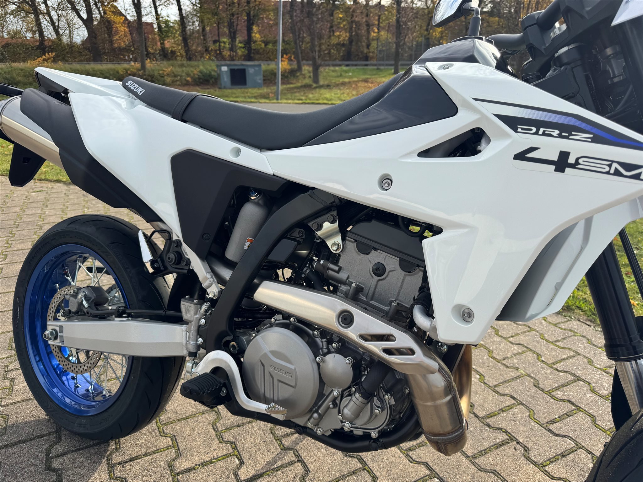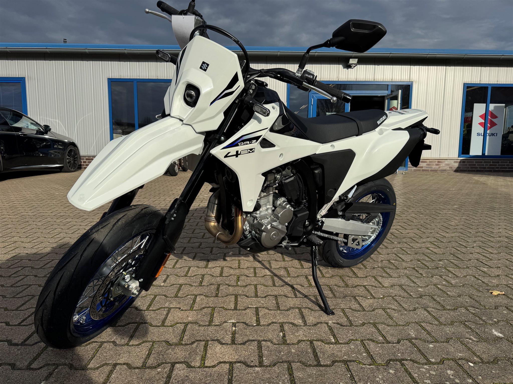 Die Suzuki DR-Z4SM bringt frischen Wind in die Supermoto-Klasse bis 450 cm. Mit sportlichem Einzylinder, agilem Fahrwerk und innovativer Elektronik ist sie gebaut für maximalen Fahrspaß egal ob auf der Straße, im Stadtverkehr oder auf dem Supermoto-Track.